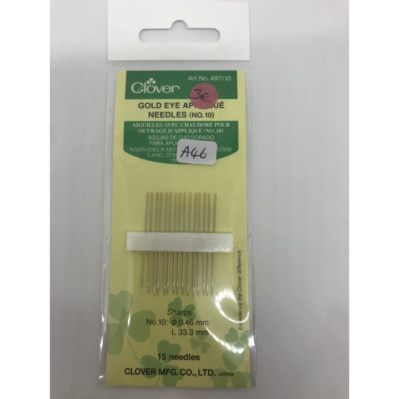 Clover aiguilles avec chas doré pour ouvrage appliqué (NO.10) PCS 15
