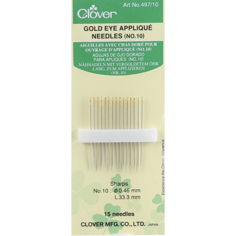 Clover aiguilles avec chas doré pour ouvrage appliqué (NO.10) PCS 15